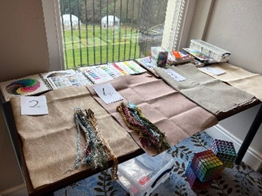 This journey is in its infancy and is being guided by the needs of stitchers that they have met. Currently they have run two retreats. The first being the Dorcas Haynes retreat enabling stitchers to start this large band sampler with advice on fabric and thread conversions, teaching the stitches required to enable those who love the sampler to have the confidence to continue with it on their own. The second retreat was focused on colour and how as individuals we interpret colour and how this knowledge can be transferred to our stitching.